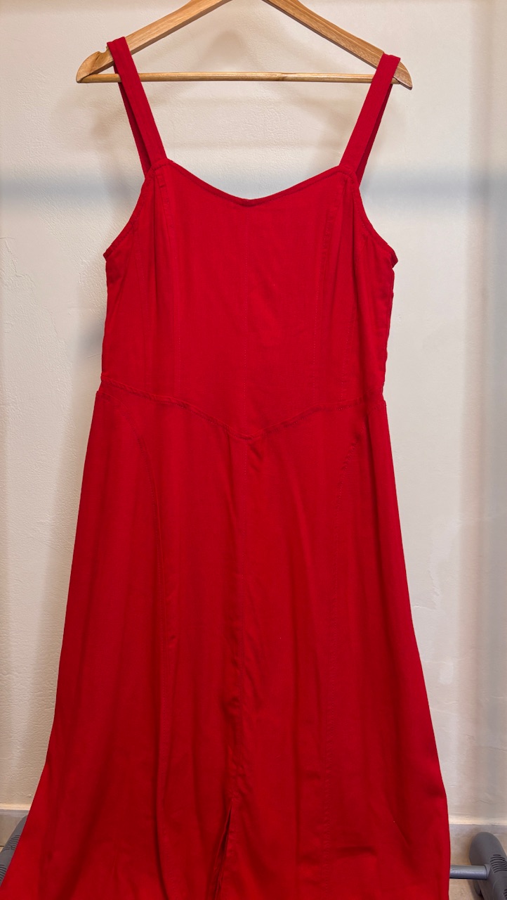 #use (com tag) Vestido corset sacada em linho, midi, tamanho 40 $335